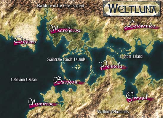 Cagesong of the Ocean takes place on the continent of Weltluna - one of three continents separated by the Gagharv.